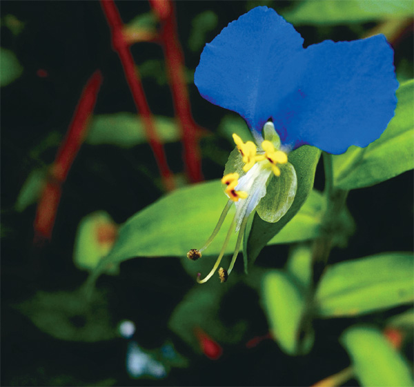 后來我才知道,翠蝴蝶的另一名字是鴨跖草,客家話讀成鴨屎草也沒錯,就是委屈了它。有人說因為鴨子喜歡吃它們的葉子,經(jīng)常光顧,它們在泥土地上踩過的腳印,與鴨跖草的葉子有幾分相似,于是有了這么個與身份及不相配的名字。