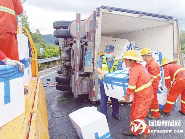 “往博羅方向九和至藍(lán)塘路段K1792處發(fā)生小貨車側(cè)翻事故,現(xiàn)場(chǎng)占據(jù)第一車道,需要吊車施救和養(yǎng)護(hù)清理。”19日17時(shí)許,廣東交通集團(tuán)所屬揭博高速路政員馮喬緯、陳文強(qiáng)巡查至藍(lán)塘至九和路段時(shí),發(fā)現(xiàn)對(duì)向車道一輛小貨車側(cè)翻在路面,連忙向監(jiān)控中心尋求幫助。
