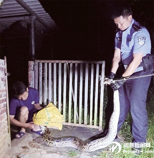 本報(bào)訊 記者 曹志成 通訊員 楊容清 王麗君 近日,東源縣、連平縣兩戶村民家出現(xiàn)蟒蛇,東源縣公安局、連平縣公安局民警迅速出動(dòng),將蟒蛇控制捕獲,并交由當(dāng)?shù)亓謽I(yè)部門進(jìn)行放生等處置。