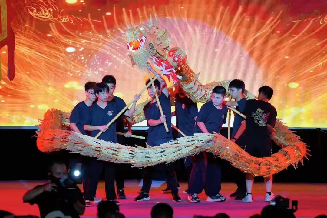 開(kāi)場(chǎng)節(jié)目《追龍少年》瞬間點(diǎn)燃現(xiàn)場(chǎng)氣氛。河源理工學(xué)校的貓頭獅隊(duì)與上莞少年香火龍隊(duì)聯(lián)袂演出,鑼鼓聲、吶喊聲交織,獅子的憨態(tài)可掬與火龍的靈動(dòng)矯健相得益彰,傳統(tǒng)文化與青春活力碰撞出別樣火花,臺(tái)下觀眾掌聲雷動(dòng)。緊接著,客家童謠《月光光》緩緩響起,熟悉的旋律勾起許多人童年的回憶,大人小孩跟著輕聲哼唱,溫馨氛圍彌漫全場(chǎng);廣場(chǎng)舞《飲燈酒》節(jié)奏歡快,舞者們身著客家服飾,動(dòng)作整齊劃一,生動(dòng)還原了客家人辦喜事時(shí)“飲燈酒”的熱鬧場(chǎng)景,讓游客直觀感受客家民俗文化;情景朗誦《一封家書(shū)》中,演員分別扮演阮嘯仙與家人,三名學(xué)生分別深情朗誦家書(shū)內(nèi)容,字里行間滿是家國(guó)情懷與思念之情,感動(dòng)了不少觀眾;村民自編自演的舞蹈《小雨》更具創(chuàng)意,背景屏幕播放著蘇家圍荷花池的美景,撐傘游園將鄉(xiāng)村的詩(shī)意與浪漫展現(xiàn)得淋漓盡致。