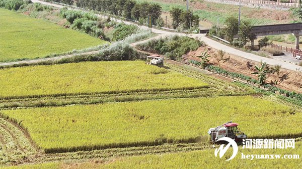 豐收畫卷美 千畝晚稻開鐮 龍川縣龍母鎮(zhèn)機(jī)械化助力顆粒歸倉