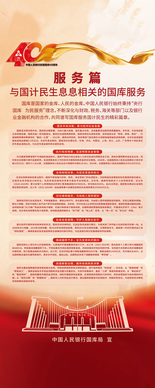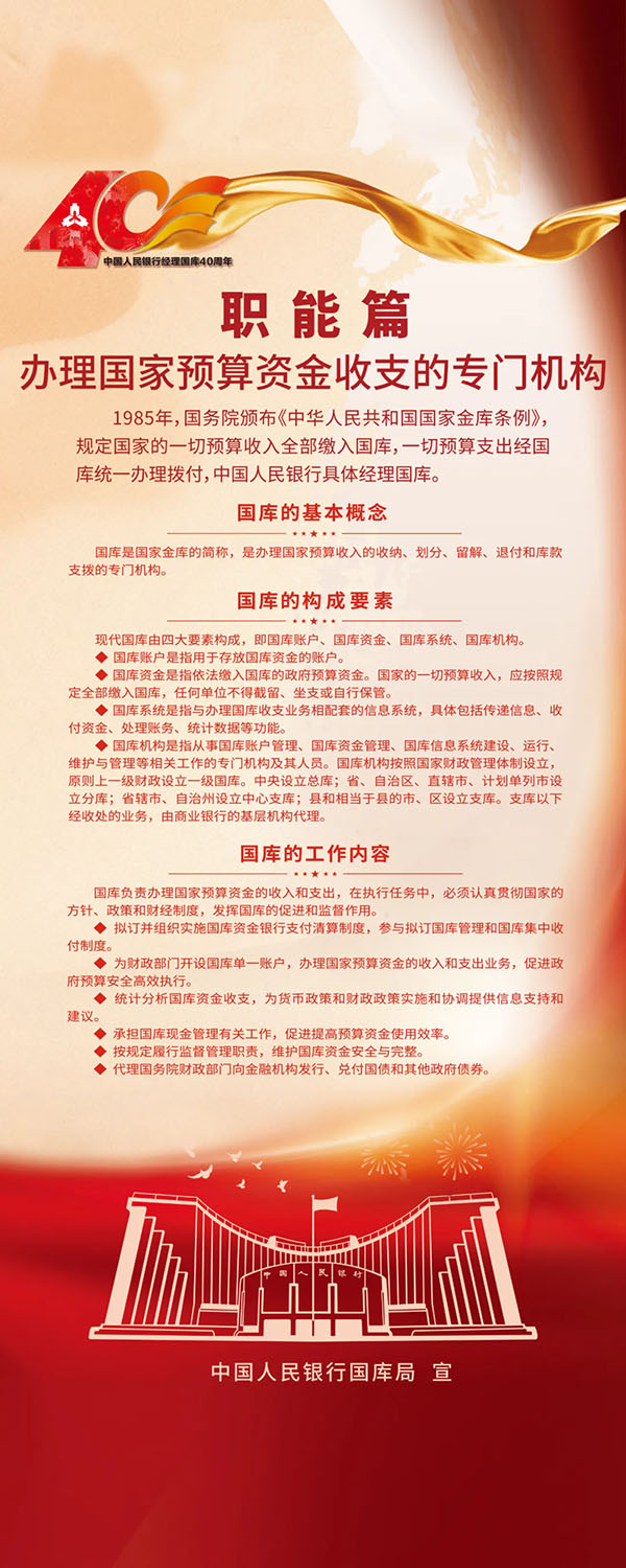 “人民銀行經(jīng)理國庫40周年”主題宣傳之“歷史篇”、“職能篇”、“服務(wù)篇”、“成效篇”、“未來篇”
