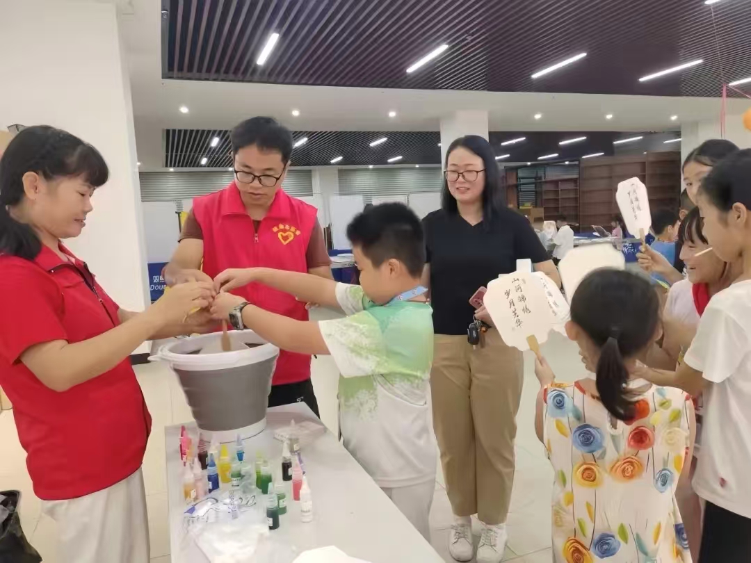 在文化傳承體驗(yàn)區(qū),“醒獅手工燈籠制作”與“非遺漆扇體驗(yàn)”尤其引人注目,吸引了不少親子家庭參與。在志愿者認(rèn)真指導(dǎo)下,家長(zhǎng)與孩子們默契配合,全神貫注地投入到創(chuàng)作中。當(dāng)一個(gè)個(gè)栩栩如生的醒獅燈籠在手中點(diǎn)亮,當(dāng)一把把獨(dú)一無(wú)二的漆扇在指尖綻放絢麗的色彩,孩子們臉上綻放出燦爛而欣喜的笑容,家長(zhǎng)則在親密協(xié)作中感受到濃濃的溫情。